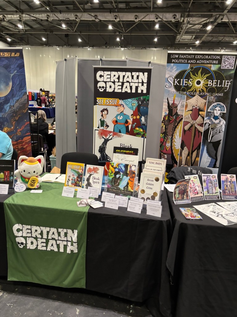 Chris is an easy conversationalist for a games journalist with anxiety psyching himself up to talk to more people. He was on his own stall with his superhero RPG, See Issue XX and having recently released Threadcutters.