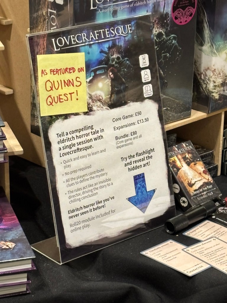 The crew were also celebrating their recent appearance on Quinns Quest’s episode about boxed RPGs where he played Lovecraftesque Second Edition.