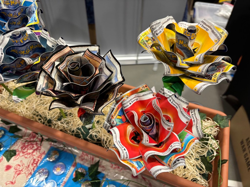 Tabletop Toad offered engraved mirrors and cardboard flowers made from Pokémon and Magic: The Gathering cards. I’m sure some people would find them sacrilegious, especially as it sounded like they were up for making flowers from proxy Black Lotus cards. That just made me love them even more.