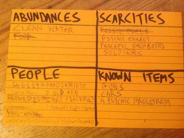 Index cards. Admittedly post-its will do in a pinch, but index cards. They’re great for:
