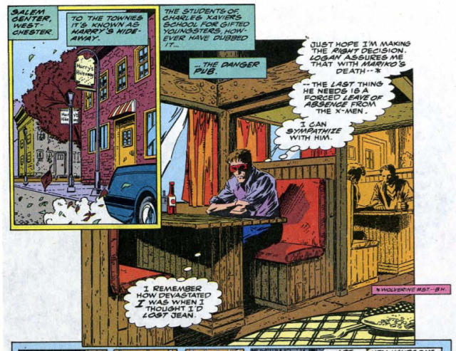 A little pub hidden away, perfect for mutants and hopefully for writers. We settle in to the blissful sound of silence while X-Man after X-Man angsts quietly in their own booth. Part way through writing, a bouncer asks us exactly what kind of mutants we are…