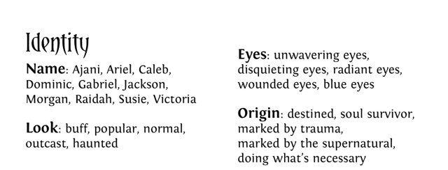 If you keep your character’s secrets and personalities open and fairly simple, you’ll make a lasting impression. We’re after bold, distinctive characters who people will remember and will have fun interacting with.