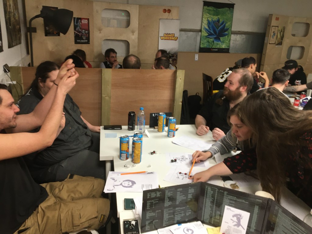 The world-building for this game was stunning, with so many interesting ideas being thrown around. We only had a couple of stories with the characters as the GM was running multiple playtests and it sounded like it was getting a bit much. My character managed to consume a great many things and accidentally went full Cronenberg at one point in a nightclub when things went awry. I really look forward to seeing how the design of this game goes.