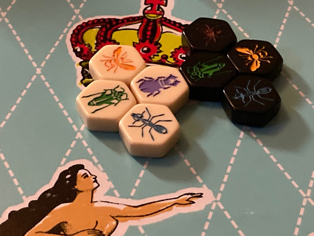 This was one of those games I dreaded playing but would have to get out of the way. I like the idea of Hive, but I don’t have a good tactical brain. We played a couple of games and I sucked each time.