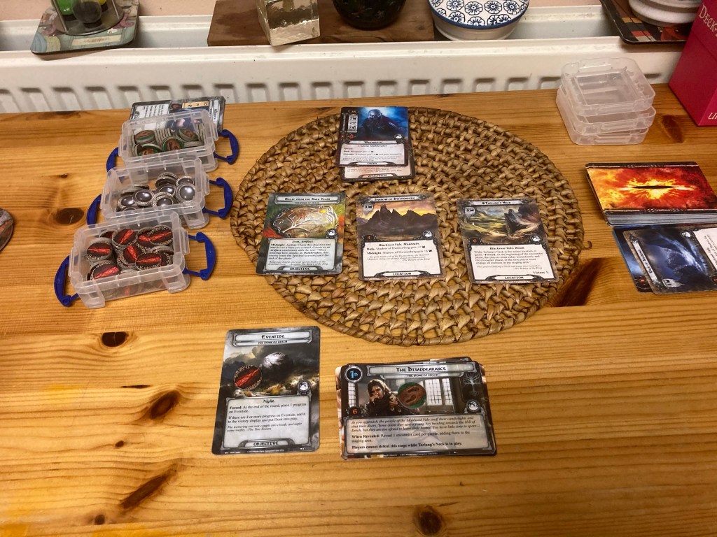 I used to be a CCG addict, so Living Card Games are a controlled method of still getting that high. I love the LotR LCG, although Marvel Champions and Arkham Horror are my preferred ones these days. We’d been watching the extended Lord of the Rings movies and decided to give this a go. It still rocks.