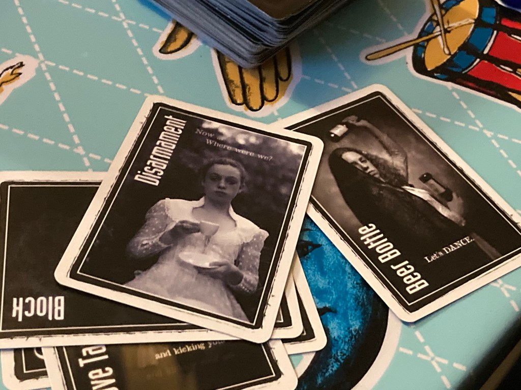 This is Lunch Money but with drunks instead of children. I think they’re pretty much the same. This one didn’t learn from the last set, but there wasn’t an expansion, so we had less cards to deal with.
