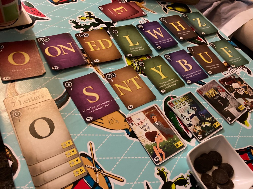 Where I dreaded Hive, Emma dreaded this. It’s a deck-building game where you’re buying letters to add to your deck and then trying to make words each round to buy more letters. It has a satisfying gameplay loop and it’s just fun playing with words. I have an app version of it which has some real login problems for multiplayer, but is pretty chilled to just make words with. Hopefully this means Emma will play it again and I’ll be able to reclaim my crown, as this was the first Paperback defeat I remember having.