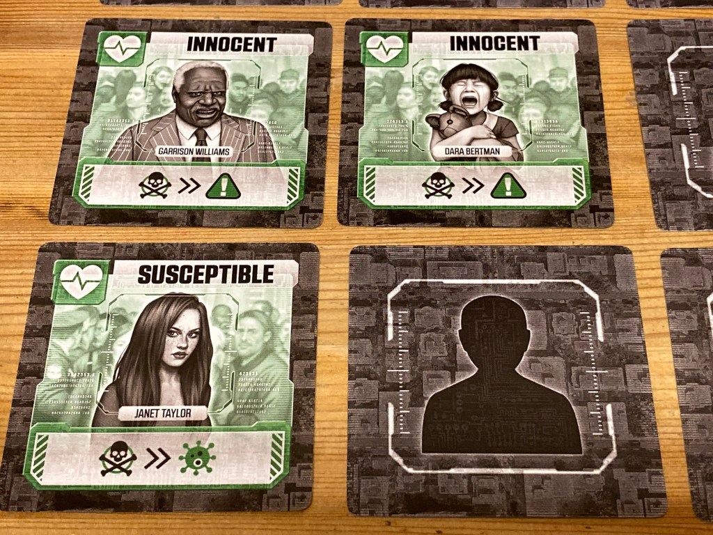 The game was a neat little puzzle with some light nods to Dead of Winter, from cameos to placement of action tokens (instead of DoW’s dice) and story cards which won’t always trigger, but might. You have a growing grid of survivors and potentially infected or undead people, then you need to manage the logistics of your actions to evacuate some people, destroy the zombies and not cause the Umbrella Corporation-ish Raxxon to step in.