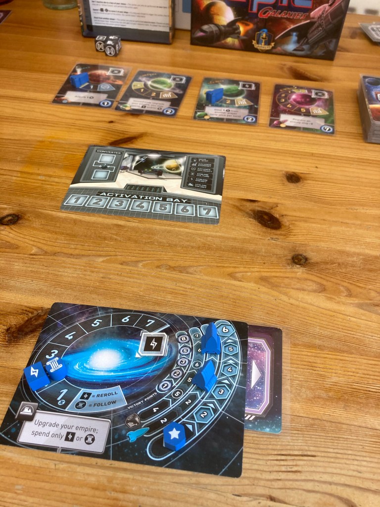 My first ‘Tiny Epic’ game of the year. My opinion on them varies, but this basic dice chucker’s quite nice. You have your faction who develop culture and power, using them to add planets to their number. Each one has an ability which anyone can use with one of their ships, but once you’ve acquired it then that ability’s your’s alone. There are ways of rerolling or merging two dice into a result of your choice. It’s nice and simple.