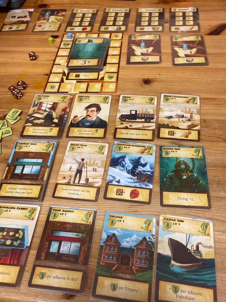 My first Ryan Laukat game of the year. Artifacts, Inc is a nice little game where you’re building a tableau of locations, people and dig sites. You uncover relics and sell them to museums or private owners, or you can ignore all of that and go diving to gamble on whether you can unearth underwater treasures.