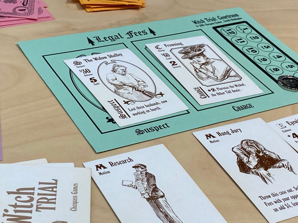 This was my first Cheapass Games game. You all play lawyers trying to prosecute or defend witches. It doesn’t matter whether they’re really witches, as long as you get paid. People end up playing it like they’re actually at a trial as they slap down surprise witnesses, evidence or objections.