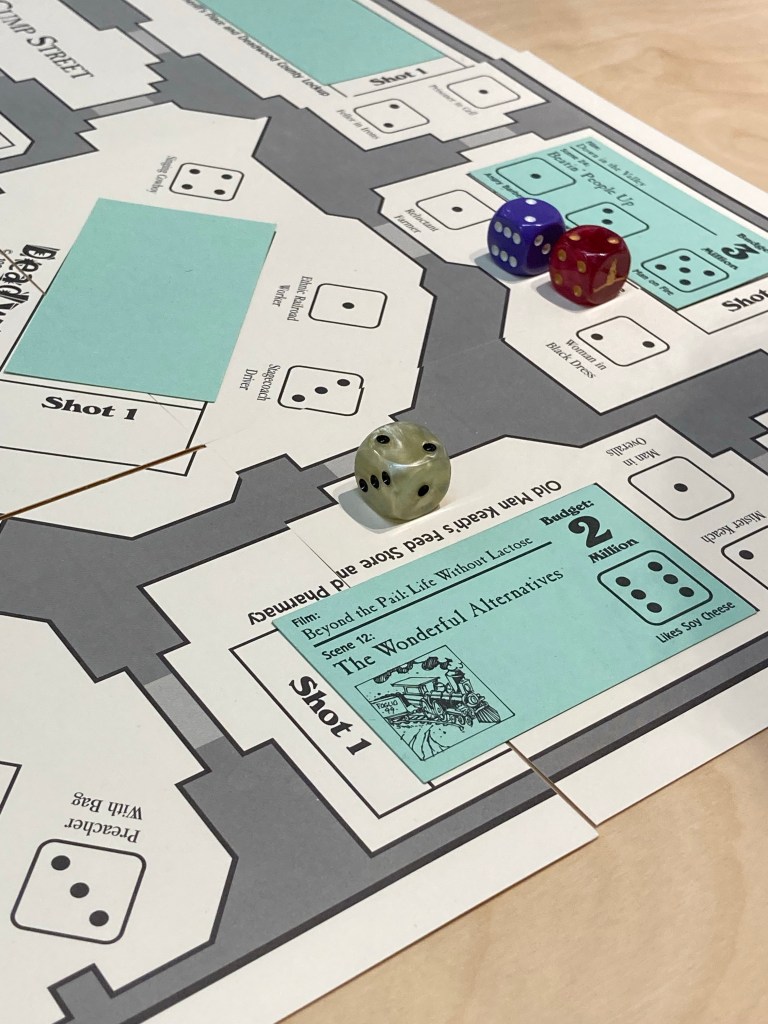 Another early Cheapass Games game, which I wasn’t sure would survive in my collection. You play struggling actors in the Hollywood studio system, represented by a d6 which shows how prestigious an extra you are. Each day is spent going from set to set, trying to take on low-level roles and work your way up to actually getting credits. You can be a jobber on the set itself who has to be low rank (knocking you down if you’re too high) but is a fantastic way of farming dollars one at a time, while main roles are on cards, vary a lot and you want done ASAP for a quick payout of a lot of money. It’s got some interesting mechanics and it was incredible watching Saffy become the richest extra by a long way, just thanks to purposefully bad die rolls on our first day of filming.
