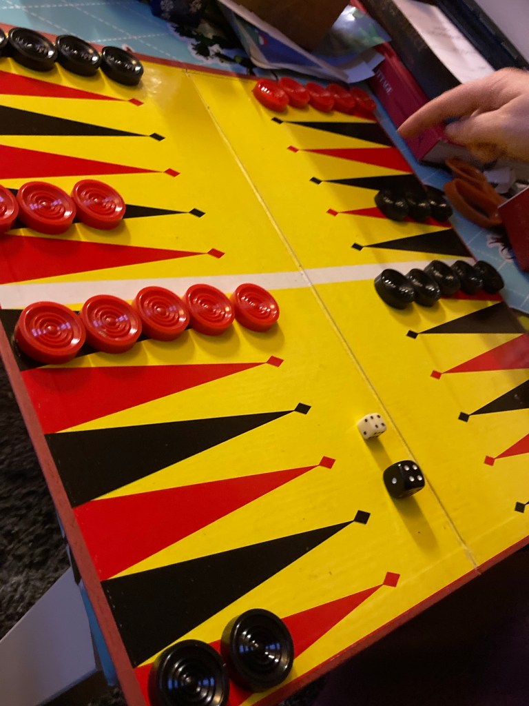 I like the idea of Chess, but I’m not good at it. I’m just not a tactical thinker. I did better than I thought against Emma, who is very much the opposite, but I still lost. Backgammon went a bit better, and I don’t think I ever played it before now. It sticks in my head as a game my dad and brother would play, but not me. It feels like there are a lot of dice chucker games with a better end to it, but it’s fine.