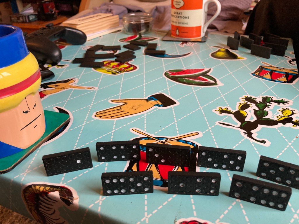 I bought a pound shop set of dominoes to run Harder they Fall, an RPG about massive battled. Even so, it was here and needed to be played. It’s fine. Like Backgammon, this feels like an ‘old men playing in a cafe’ kind of game.