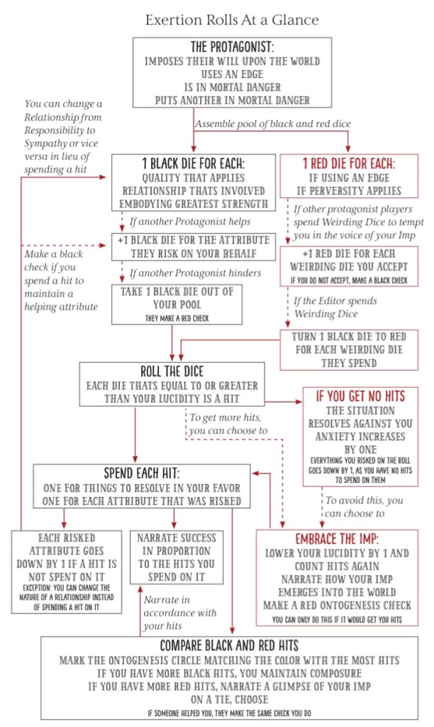 Exertion is the die-rolling process which can look a bit involved at first glance. This is the layout of how it goes: