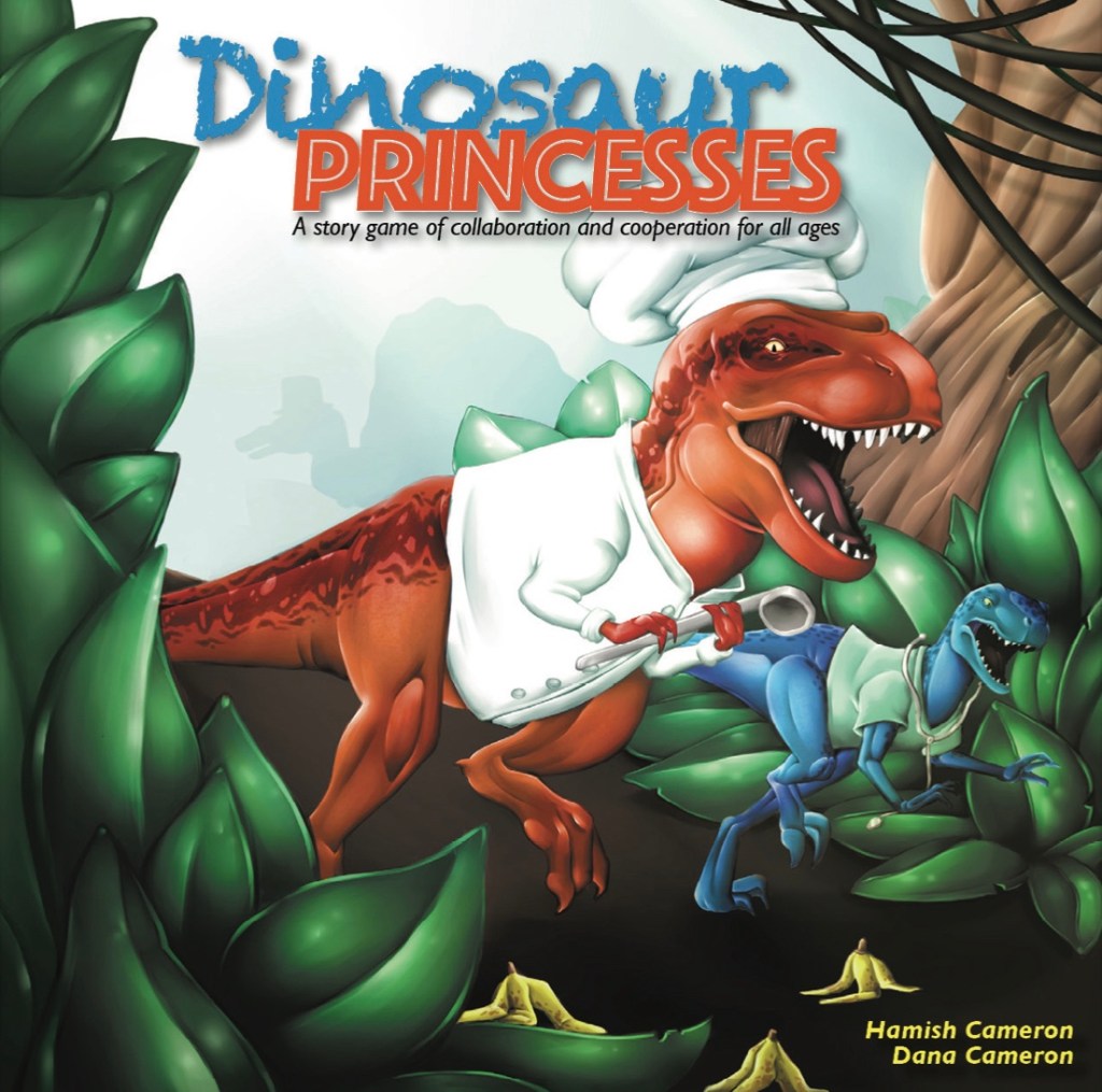 This is a light game about playing dinosaurs who are also princesses, solving problems. The book has black and white images with thick enough lines to help colouring in, which the game heartily encourages.