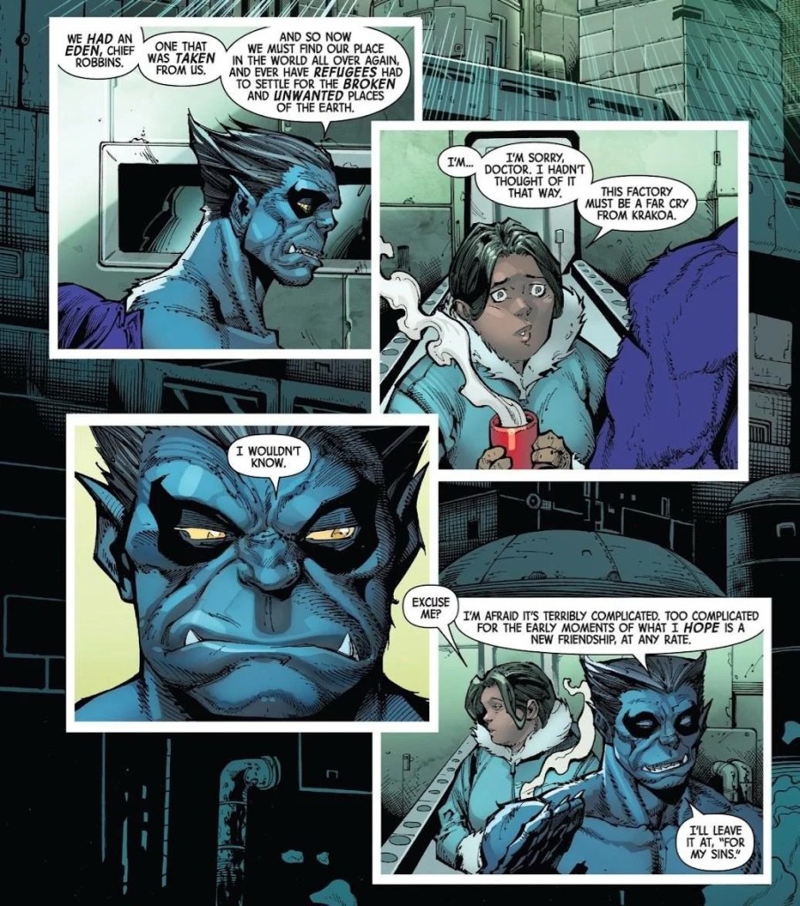 Beast left behind a backup version of himself from his Avengers stoner friend of Wonder Man era as he felt it was useless. The X-Men decided to use it to help stop the older, more evil Beast and his clone army. Now this Hank’s the reigning Beast. He’s aware he’s atoning for things another version of him did, a version he could become. He’s not quite a clone, but he’s angry about what he’s done, what he could do and how things have turned out.