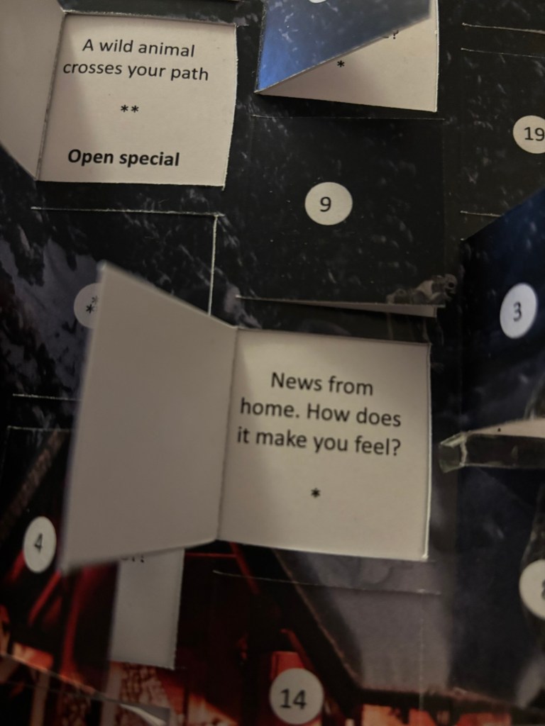 The post was barely anything. A postcard from Sam. She wanted to check that I was alright, and not going all Shining in the cabin alone. I couldn’t help but imagine Christmas in the city, surrounded by people, my sister and her partner, the kids, the noise of it all. Would I have been better getting lost in all that, or having this meditative calm out here?