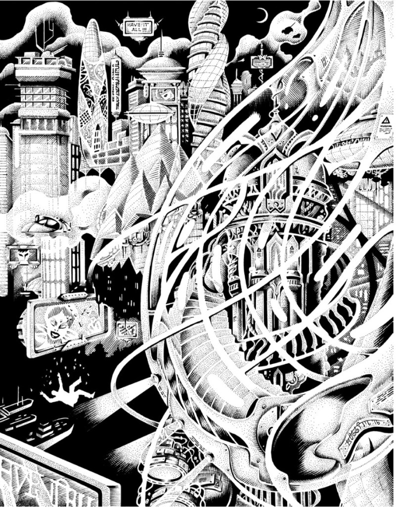 One of the strange pieces of art indicative of the section of the book you’re entering. In this case, Consume.