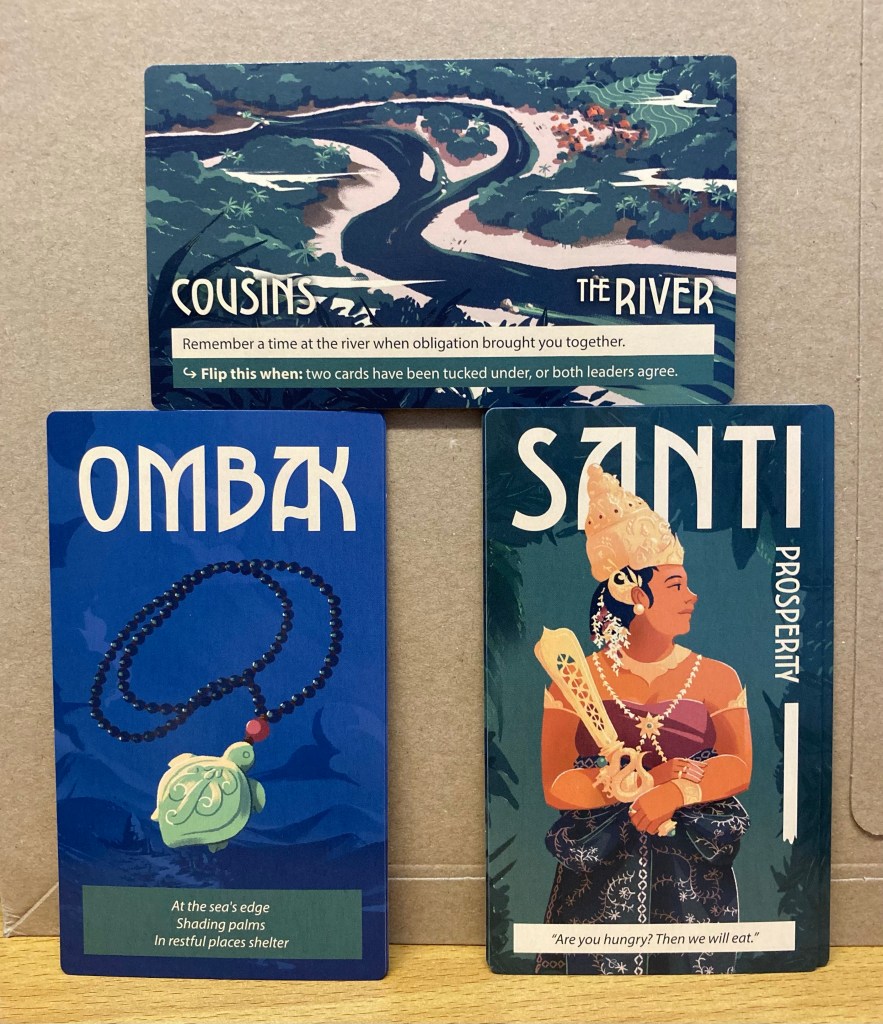 This game is an odd little one, originally just as a set of cards and some minimalist rules, it’s since been expanded a bit. You each take a card representing a god. Or at least, you might be a god. You might just be an unhoused person. You play through scenes of odd magical realism, going through ritualistic play until your character makes a final leap which may be their death or may cast aside their mortal form, bringing them back as a god. Yeah, so big content warning for suicide on this one.